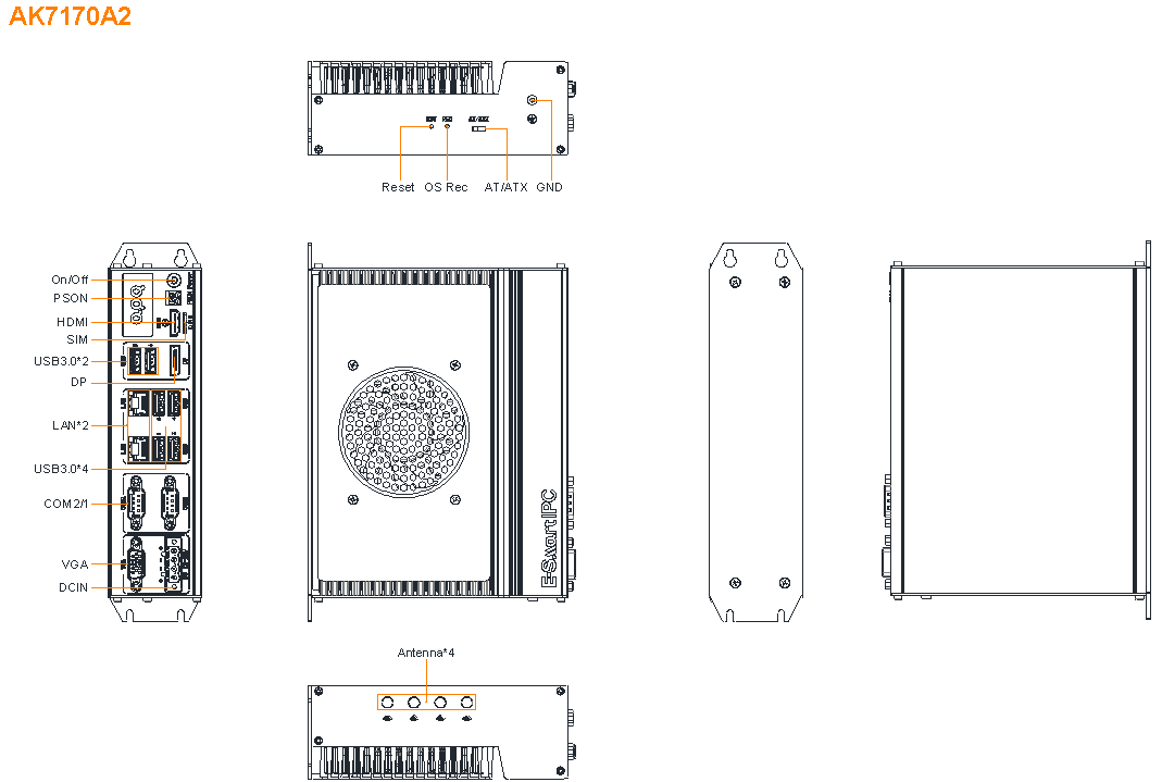 | Button | 1 * Reset (Hold down 0.2 to 1s to restart, 3s to clear CMOS) 1 * OS Rec (system recovery) |