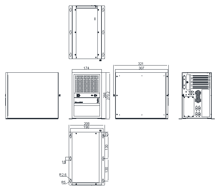 | 机箱尺寸 | 266mm(宽) * 321mm(深) * 174mm(高) | |