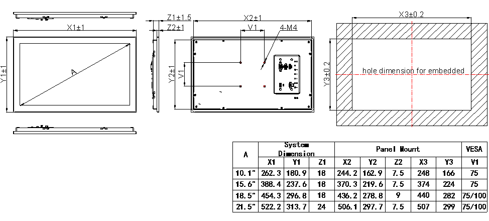 | 显示尺寸 | 10.1" | 15.6" | 18.5" | 21.5" |