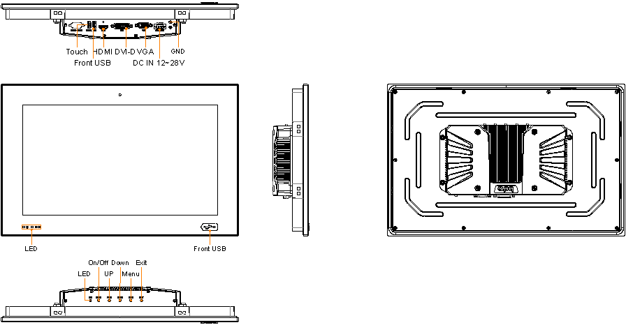 | l I/0 Ports | HDMI, DVI-D, VGA, USB for touch, USB for front panel | l Touch Type | Projected capacitive touch |